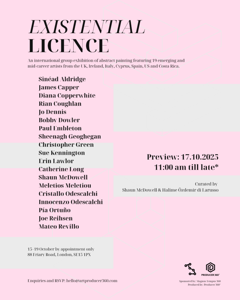 An international group exhibition of abstract painting featuring mid-career artists from the UK, Ireland, Italy, Cyprus, Spain, the US, and Costa Rica.